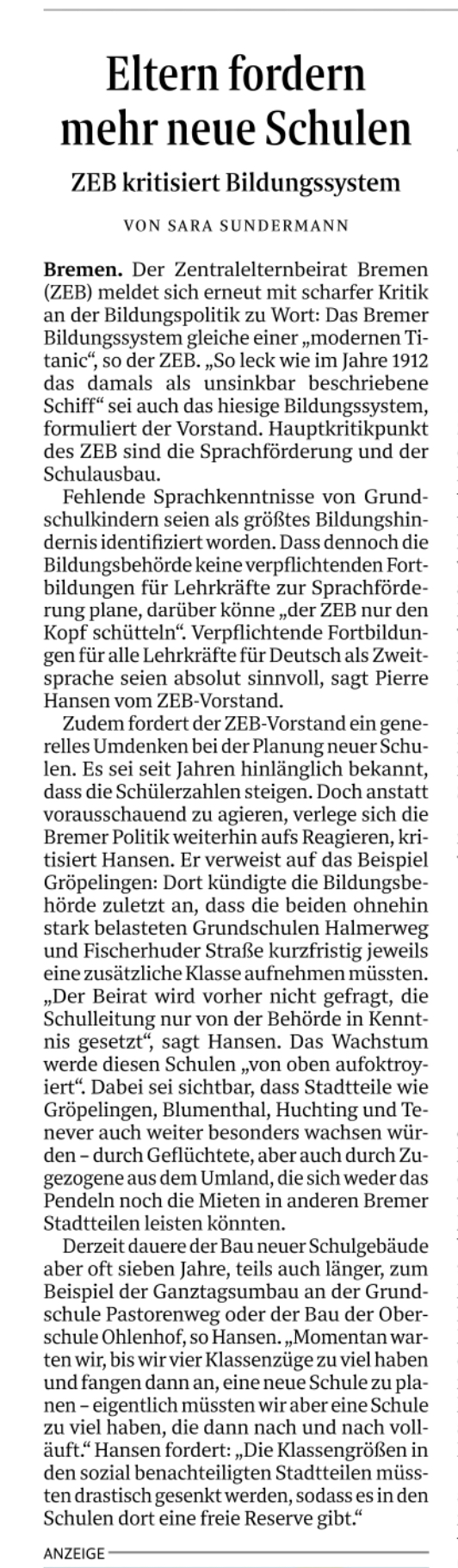 die Schülerzahlen steigen. Anstatt vorausschauend zu agieren, verlegt sich die Bremer Politik
